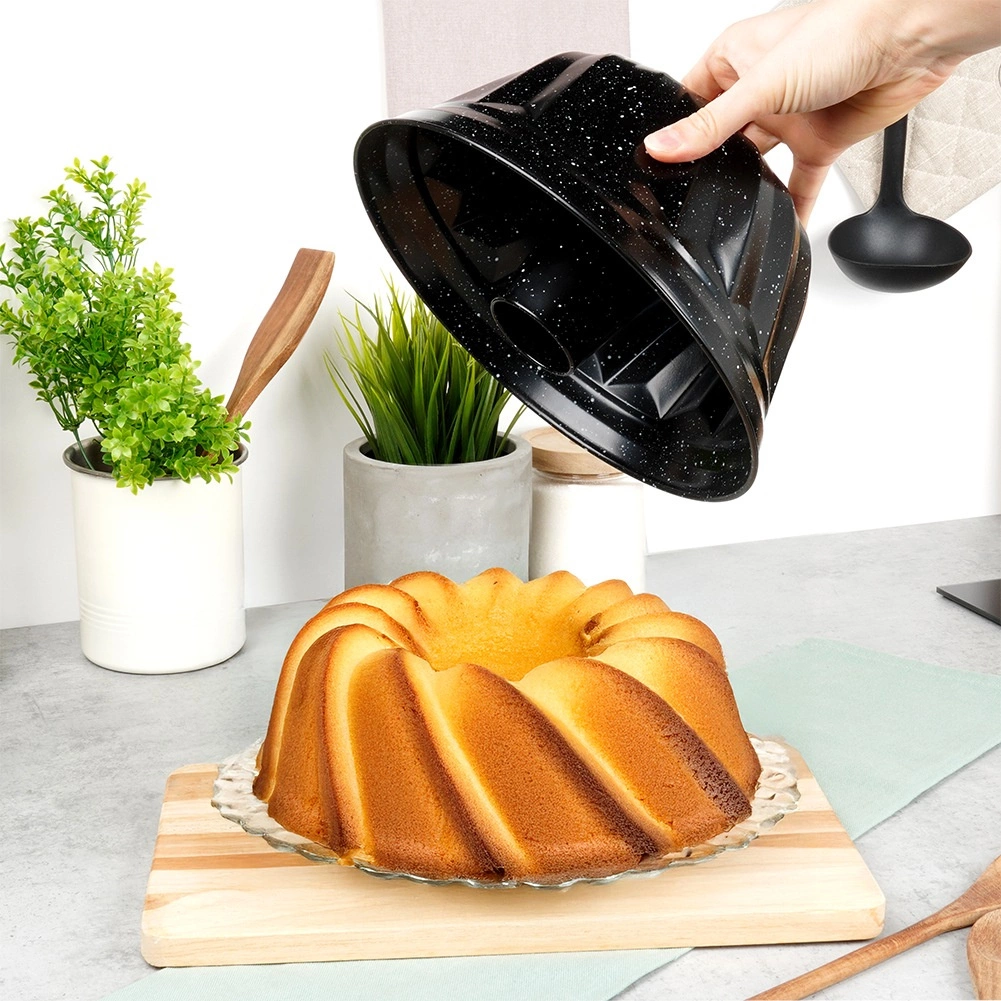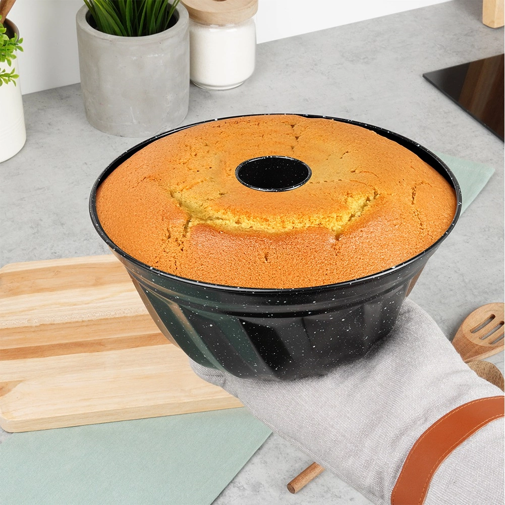 Ovaj kalup za kuglof s dimnjakom pouzdan je izbor za svakodnevno pečenje i svečane deserte. Zahvaljujući granitnom neljepljivom premazu tijesto se ne lijepi te kuglof lako vadite bez oštećenja dekorativnih žljebova. Masivan ugljični čelik učinkovito provodi toplinu i podržava ujednačeno pečenje središta i rubova.