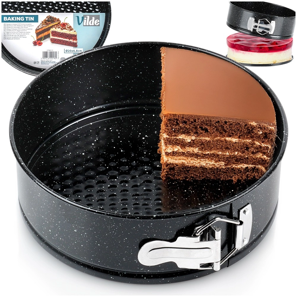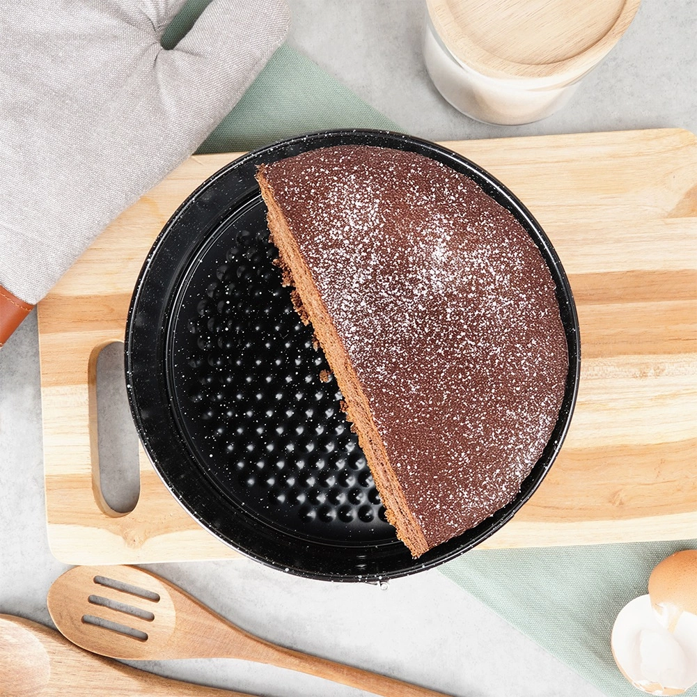 Ovaj kvalitetni okrugli kalup promjera 20 cm osmišljen je za svakodnevno pečenje. Rastezivi obod s pouzdanom kopčom i odvojivo dno omogućuju sigurno vađenje gotove kore bez oštećenja oblika. Granitni neljepljivi sloj osigurava čisto odvajanje tijesta i pri minimalnoj količini masnoće.