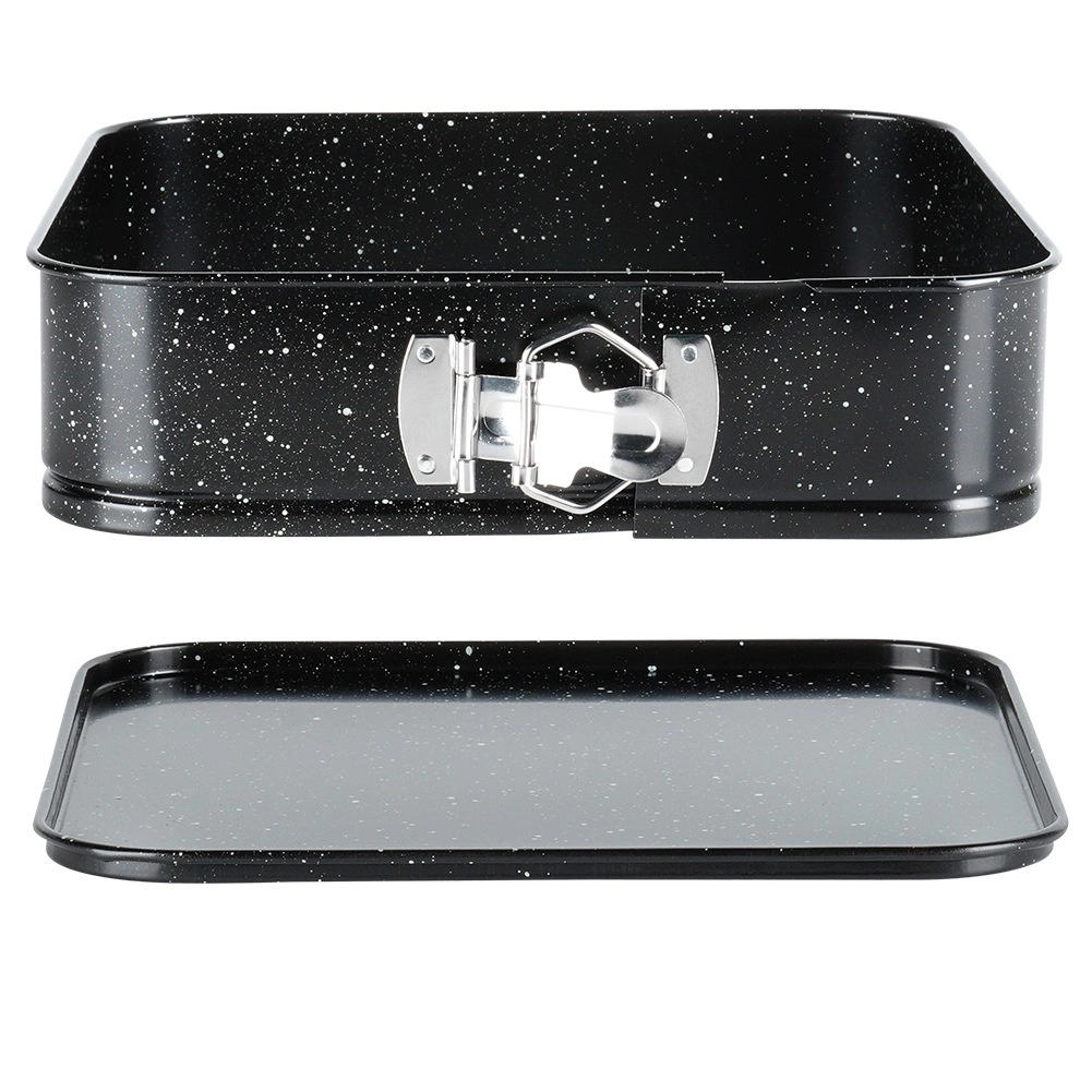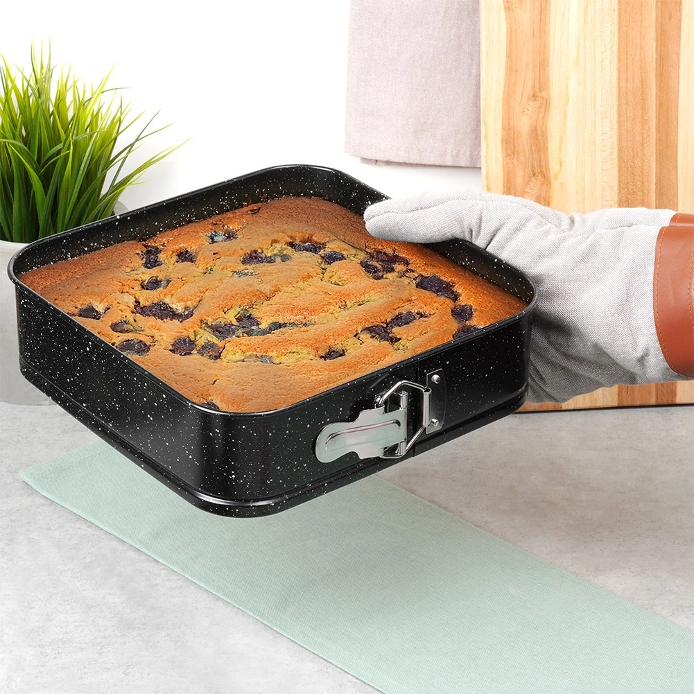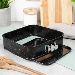 Kvadratni rastezljivi kalup dimenzija 24 × 24 × 6,8 cm pouzdan je izbor za svakodnevno pečenje. Zahvaljujući rastezljivim stranicama i izvadivom dnu pečeno tijesto vadite bez oštećenja oblika i s minimalnim trudom. Granitni neprianjajući sloj smanjuje potrebu za masnoćom i olakšava čišćenje.