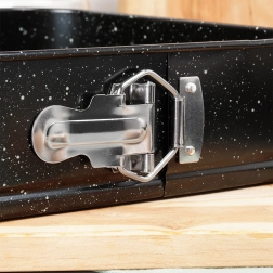 Bočna kopča omogućuje brzo otvaranje kalupa, pa tortu ili kolač izvadite bez narušavanja oblika. Idealno za cheesecakes i slojevite deserte.
