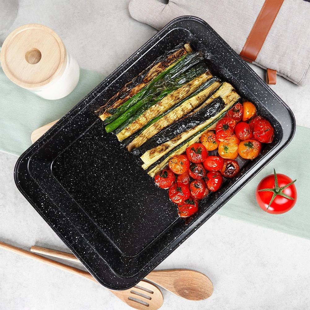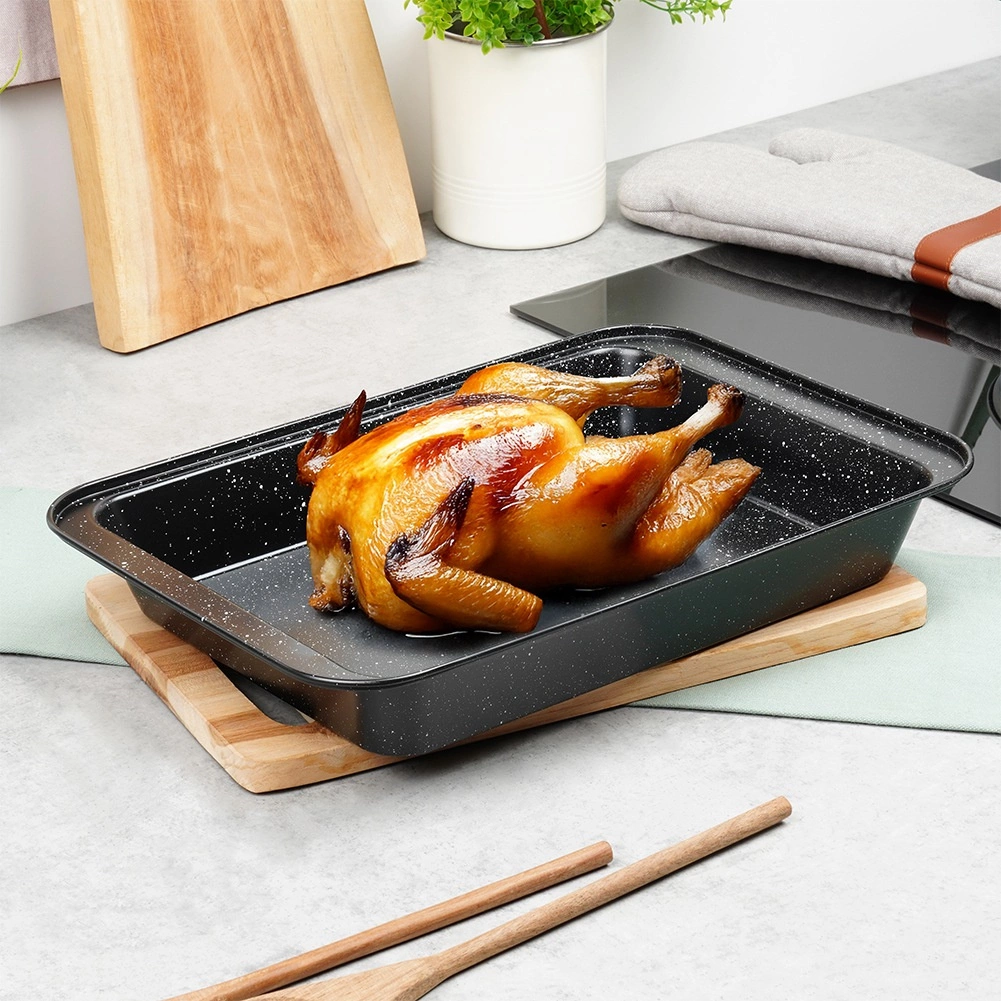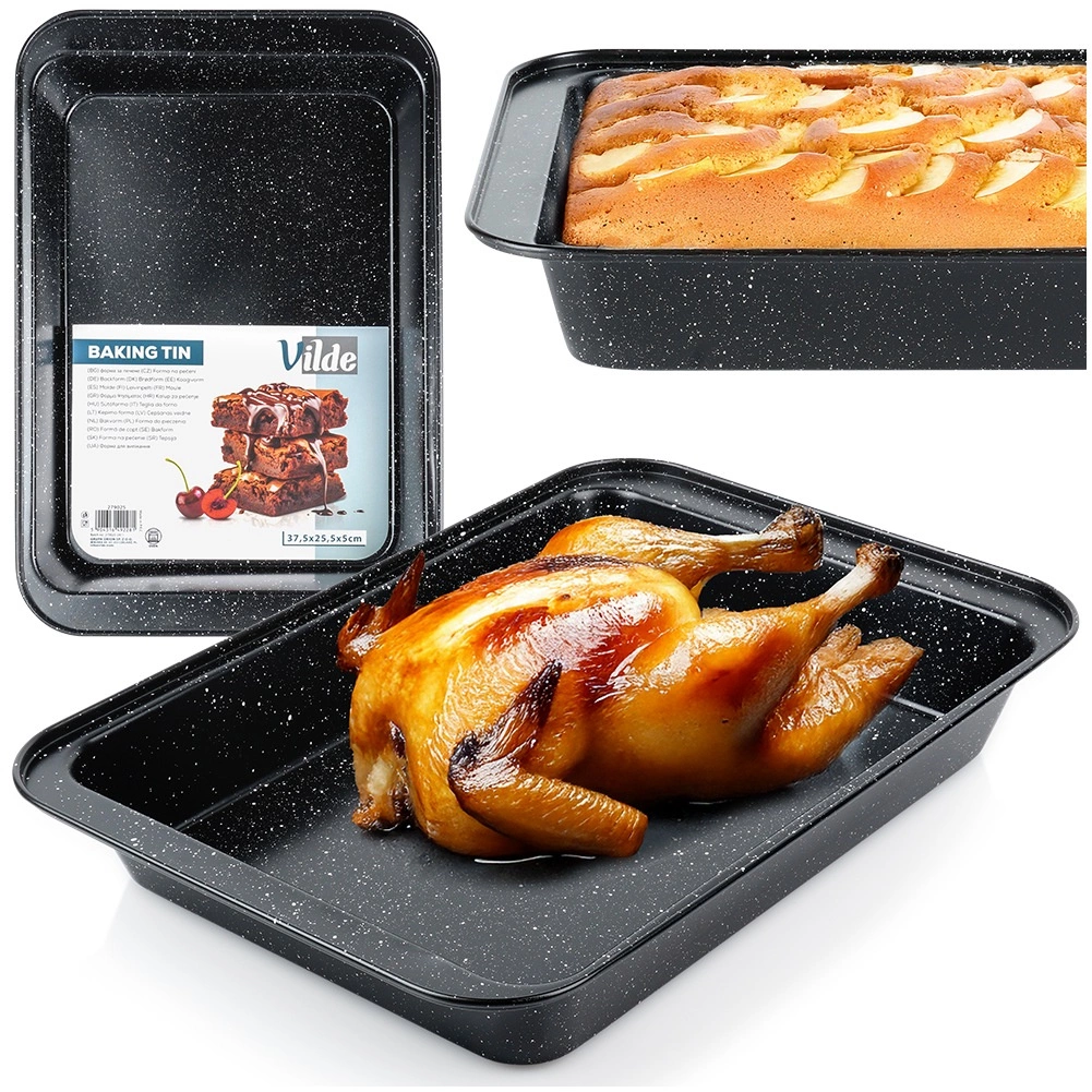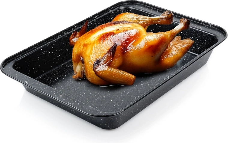 Ovaj izdržljiv kalup od ugljičnog čelika s granitnim završnim slojem osigurava ravnomjerno pečenje jela i minimalizira rizik od zagorijevanja. Neljepljiva površina omogućuje pečenje s minimalno masnoće te znatno olakšava održavanje – dovoljno je obrisati vlažnom krpom ili oprati ručno.