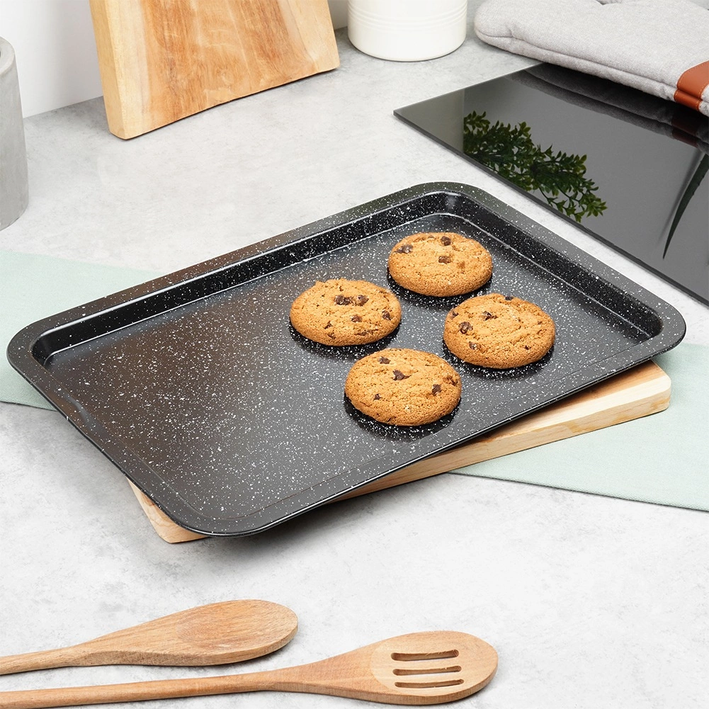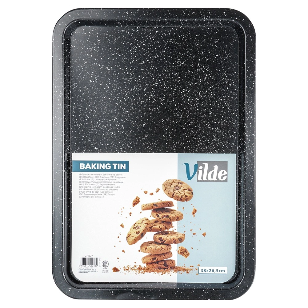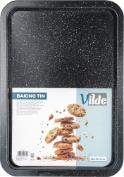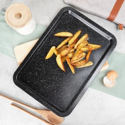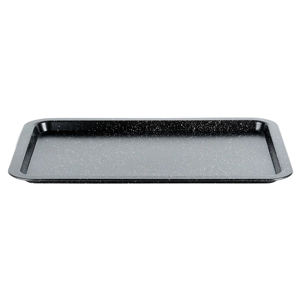 Pravokutni lim od kvalitetnog ugljičnog čelika s granitnom neprianjajućom površinskom obradom odolijeva temperaturama do 230 °C, ne upija mirise i ne zadržava tekućine. Prikladan je za plinske i električne pećnice, a zahvaljujući ujednačenoj raspodjeli topline uvijek postižete odlične rezultate.