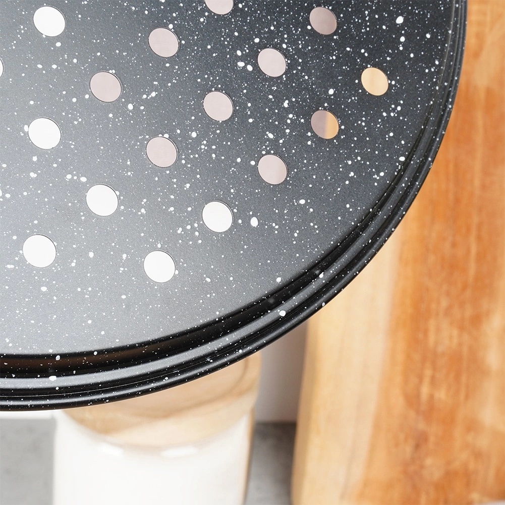 Pecite domaću pizzu s savršeno hrskavim dnom. Perforirano dno osigurava bolju cirkulaciju zraka i brži odvod pare, tako da se tijesto ravnomjerno ispeče i ostaje lijepo hrskavo. Neljepljivi granitni premaz minimalizira zagorijevanje i pri maloj količini masnoće te olakšava čišćenje.