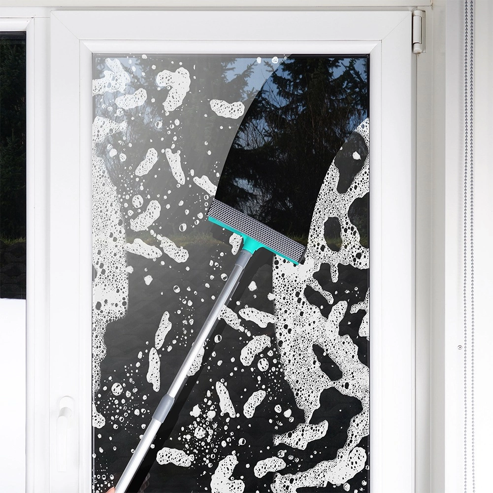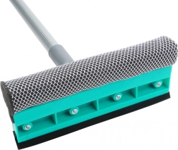 Mrežasta spužva uklanja nečistoće, a gumena letvica savršeno odvlači vodu bez mrlja – sve u jednoj kompaktnoj glavi.
