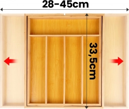 Proširiva konstrukcija od 28 do 45 cm osigurava da se organizator točno uklopi u vašu ladicu i maksimalno iskoristi dostupan prostor.