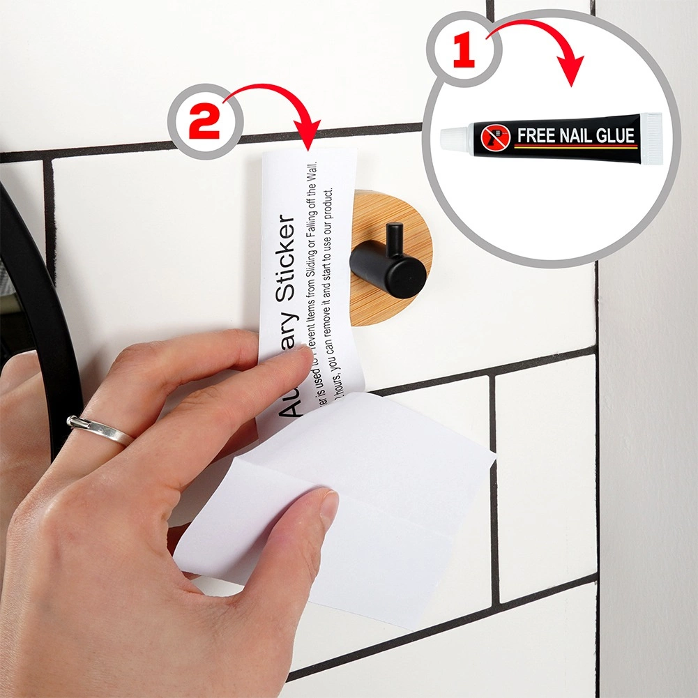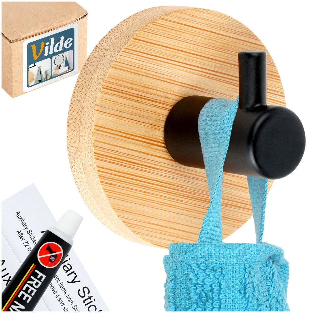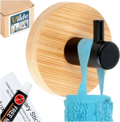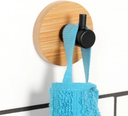 Elegantna kuka s okruglom bambusovom podlogom i mat crnim metalnim trnom pristaje u moderne i prirodne interijere. Pruža praktično mjesto za vješanje ručnika, odjeće ili torbi, bez potrebe za bušenjem zidova. Zahvaljujući kvalitetnim materijalima otporna je i dugotrajno pouzdana.