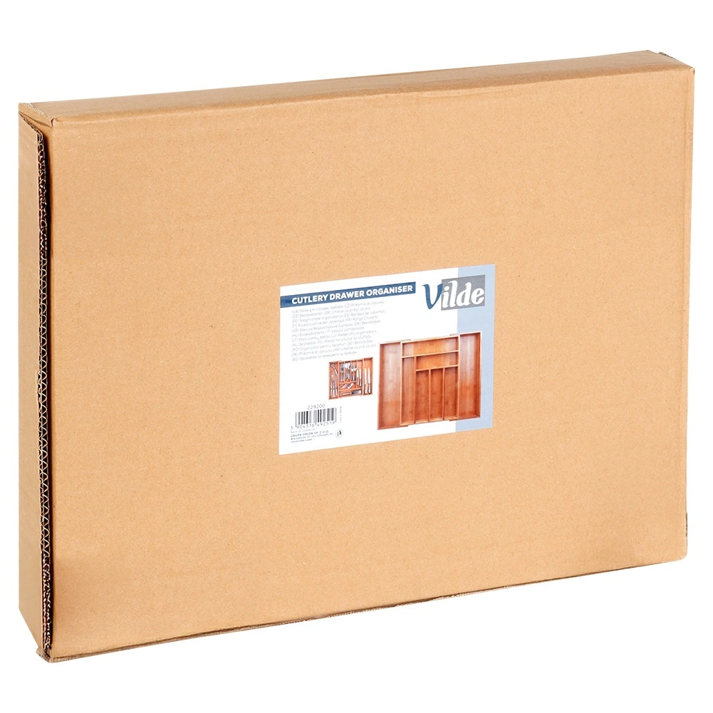 Praktičan bambusov organizator za ladicu s podesivom širinom 35,5–54,5 cm održava pribor za jelo, noževe i kuhinjski alat savršeno posloženima. Zahvaljujući 7 promišljeno raspoređenih pretinaca nudi preglednu podjelu i lak pristup. Izrađen od izdržljivog bambusovog drva, koje je čvrsto, elegantno i lako za čišćenje. Originalan proizvod marke VILDE.