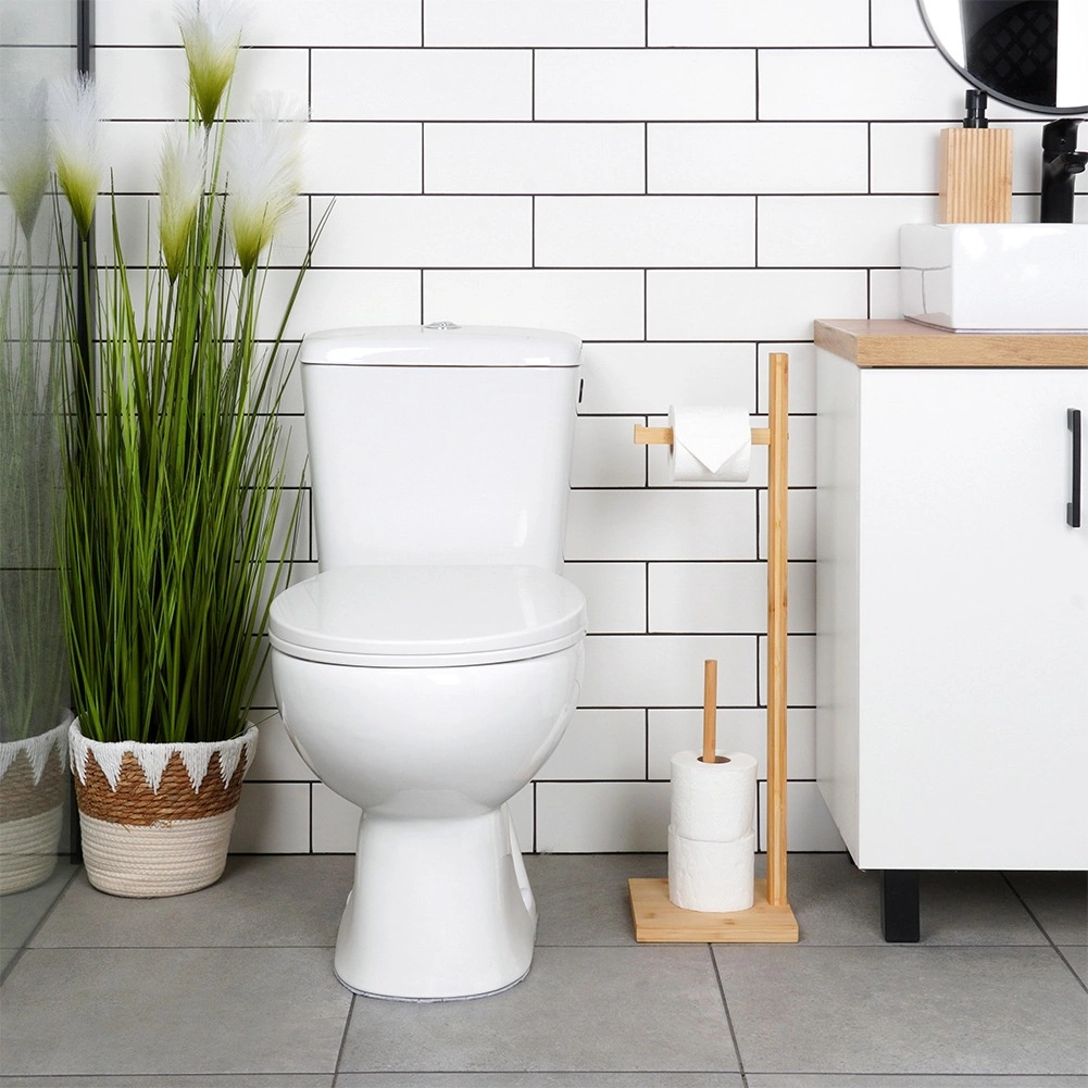 Praktičan i stilski dodatak svakoj kupaonici: stalak od kvalitetnog bambusovog drva kombinira držač za udobno odmotavanje i pametno vertikalno pohranjivanje rezervnih rola. Kompaktan dizajn štedi prostor i drži toaletni papir uvijek pri ruci.