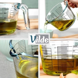 Mjerna čaša izrađena je od borosilikatnog stakla koje podnosi širok raspon temperatura od −30 °C do +400 °C. Zbog toga je pogodna za hladne i vruće sastojke, hladnjak, mikrovalnu pećnicu i klasičnu pećnicu. Jednostavno održavanje omogućuje mogućnost pranja u perilici posuđa.