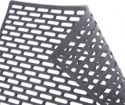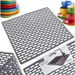 Promišljena perforirana struktura omogućuje slobodan protok vode i sprječava njezino zadržavanje. Podloga se lako čisti, fleksibilna je i odlično prianja na površinu. Njezine kompaktne dimenzije 33 × 28 cm i neutralan izgled uklapaju se u moderne i klasične kuhinje.