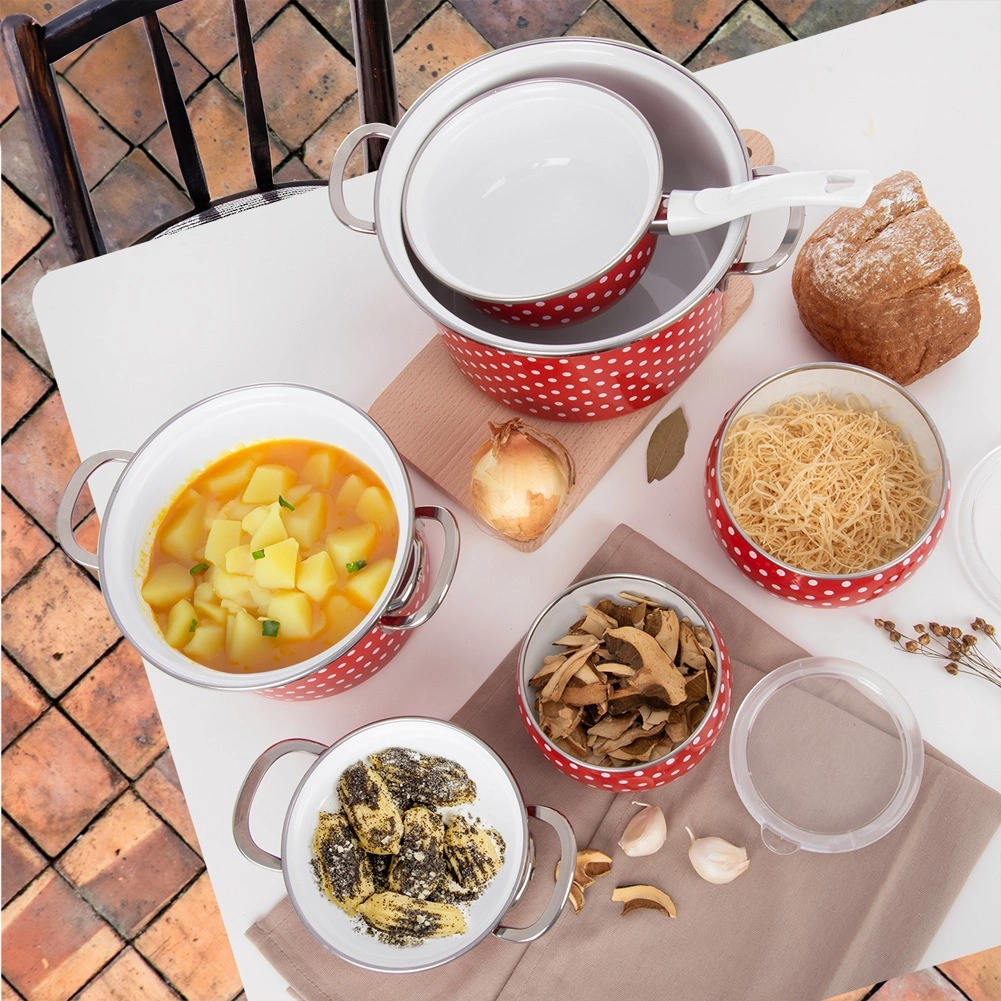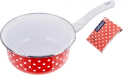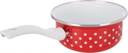 Elegantni lončić u retro dizajnu s crvenim emajlom i bijelim točkicama uljepšat će vašu kuhinju i istovremeno ponuditi praktičnu primjenu svaki dan. Zahvaljujući dugoj ručki udobno leži u ruci i lako se njime toči. Emajl je zdravlju siguran i prikladan i za alergičare.