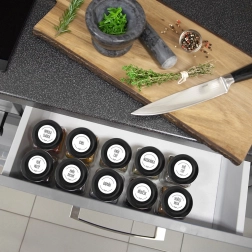 Zahvaljujući širokom grlu posudica se lako puni i čisti. Odlično pristaje u ladice, police i na kuhinjski pult te pomaže održati red i elegantan izgled svake kuhinje. Prikladna je za kućanstva i ugostiteljstvo. Moguće je dopuniti je samoljepljivim etiketama za jednostavno označavanje.