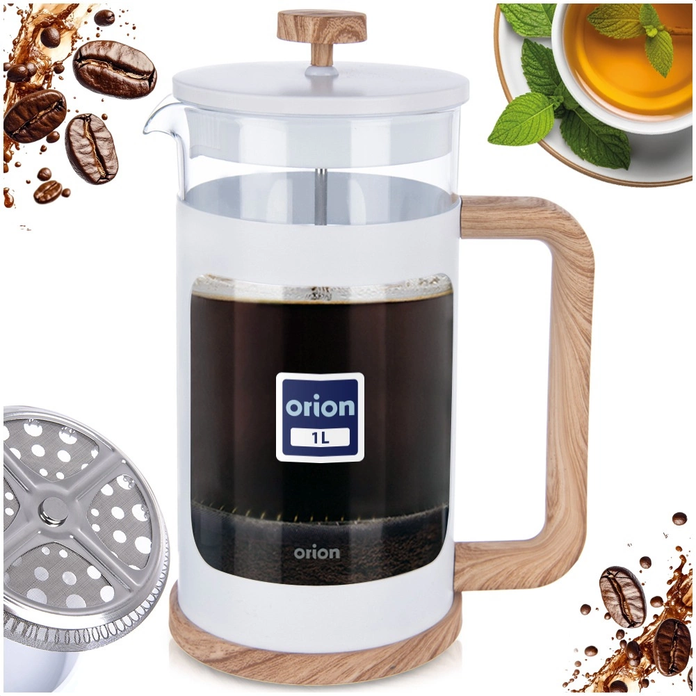 Stakleni french press WHITELINE spaja elegantnu bijelu izvedbu s drvenim akcentima i funkcionalnom konstrukcijom za svakodnevni ritual pripreme napitaka. Zapremina od 1 litre idealna je za više porcija kave, čaja ili biljnih infuzija. Fino inox sito učinkovito odvaja talog i listiće, pa je rezultat čist, aromatičan napitak.