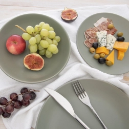 Univerzalan keramički tanjur 27 cm s mat površinom u maslinasto zelenoj nijansi prikladan je za glavna jela, salate, deserte te posluživanje slanih i slatkih delicija. Zahvaljujući kvalitetnoj izradi je izdržljiv i trajan, a istovremeno se lako kombinira s ostalim komadima stolnog posuđa.