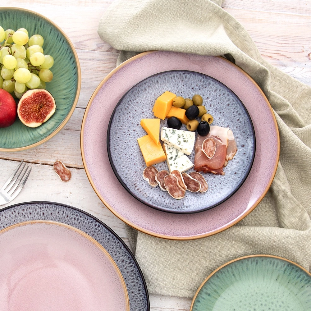 Reaktivna, nježno pjegava glazura daje tanjuru originalan izgled, a svaki komad djeluje jedinstveno na postavljenom stolu.