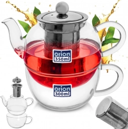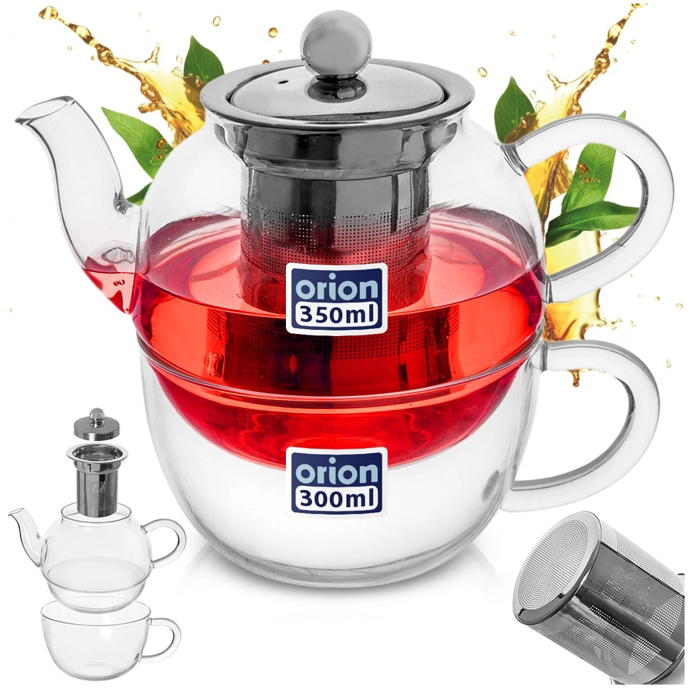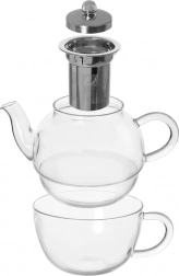 Ovaj 2-dijelni set kombinira staklenu kafetijeru zapremnine 350 ml sa šalicom 300 ml, koje se praktično spremaju umetnute jedno u drugo. Kafetijera je opremljena finim inox sitom za ugodno namakanje rinfuznog čaja i bilja, a prozirno staklo omogućuje kontrolu intenziteta napitka.