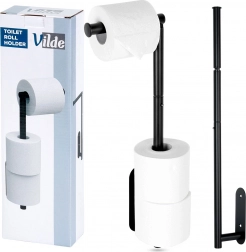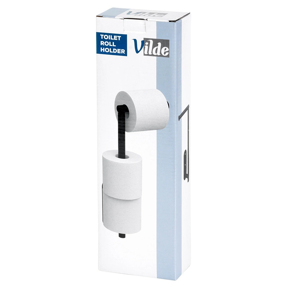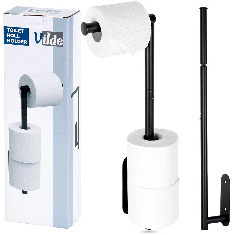 Ovaj višenamjenski držač toaletnog papira od nehrđajućeg čelika u mat crnoj izvedbi kombinira dozator i spremnik u jednom. Standardno prima 1 rolu za trenutnu upotrebu + 4 rezervne (ukupna visina 46,5 cm). Zahvaljujući rotirajućoj gornjoj ruci može se postaviti i kao potpuno okomiti spremnik s kapacitetom do 5 rola i visinom oko 60 cm.