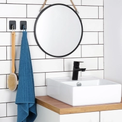 Minimalističke kukice s pravokutnom bazom donose pouzdano rješenje za vješanje svakodnevnih dodataka. Izdržljiva izvedba od lagane plastike u crnoj boji odlično pristaje modernim interijerima, a zahvaljujući samoljepljivoj 3M pjeni osigurava snažno prianjanje na staklu, ogledalu, glazuri i namještaju.