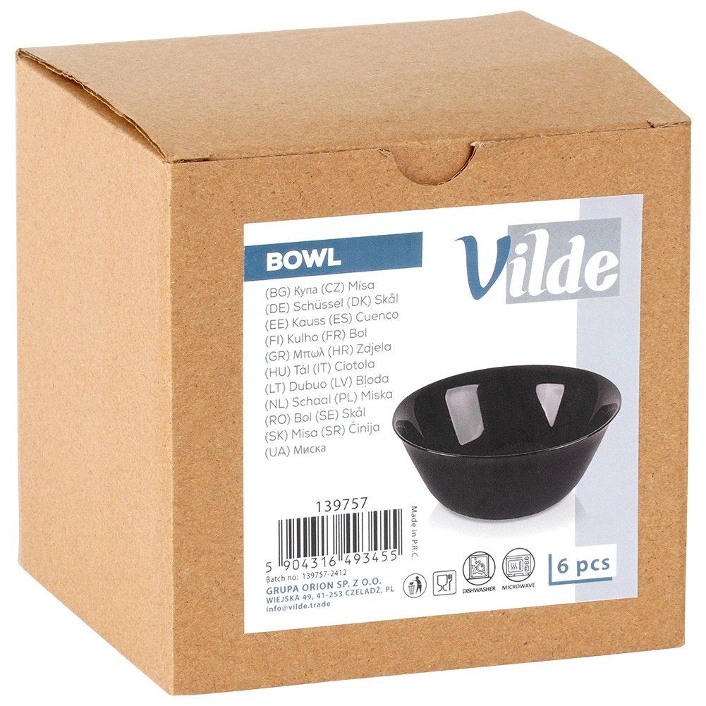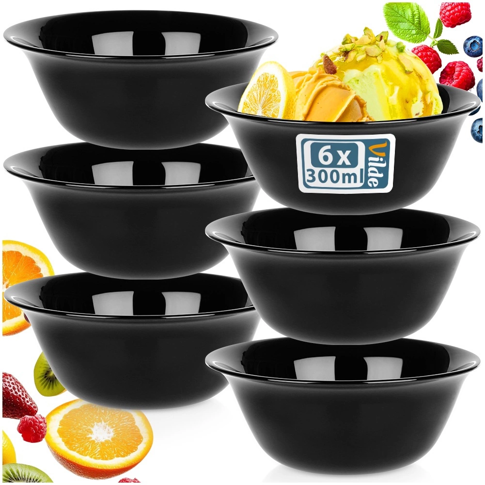 Praktičan i stilski set zdjelica za svakodnevnu upotrebu i svečano posluživanje. Svaka zdjelica ima zapreminu 300 ml, a zahvaljujući izdržljivom opalnom staklu u elegantnoj crnoj boji izgledom podsjeća na porculan. Zdjelice su idealne za orašaste plodove, sušeno voće, deserte, umake, dipove i manje salate – univerzalan pomoćnik u svakoj kuhinji.