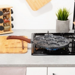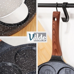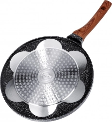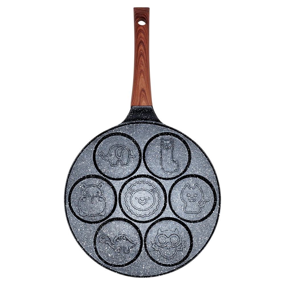 Ova stilska tava iz linije BLACK & WOOD idealna je za jaja, popečke i mini palačinke. Sedam okruglih udubina s razigranim reljefima životinjica stvara lijepe, ujednačene oblike i donosi radost svakom doručku. Izdržljiva aluminijska konstrukcija s granitnom završnom obradom osigurava brzo zagrijavanje i dugi vijek trajanja.