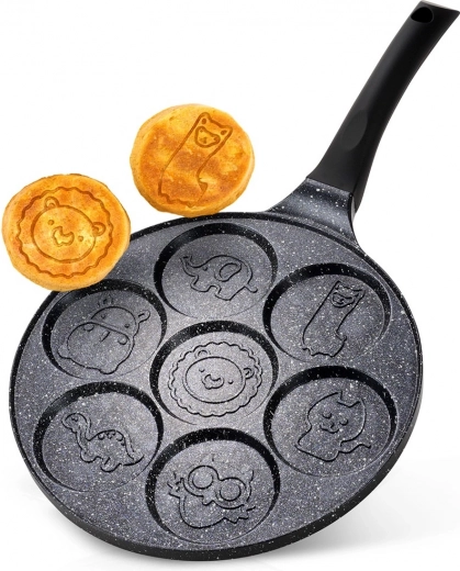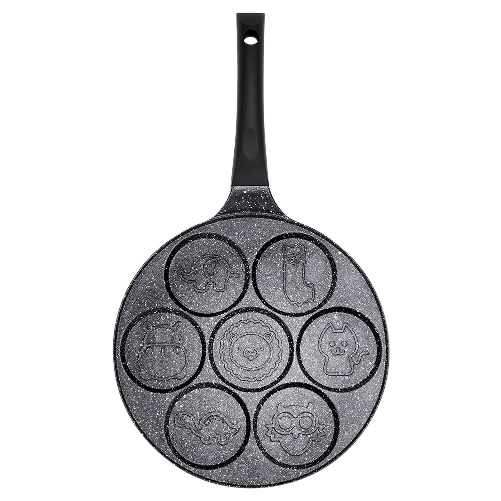 Uživajte u brzoj i razigranoj pripremi doručka. Granitna tava BLACK LINE kombinira lagano aluminijsko tijelo s izdržljivom neljepljivom obradom, pa jaja na oko, ljevanci i mini palačinke lako izlaze iz kalupića, a tava se jednostavno čisti. Reljefi životinjica na dnu kalupa razveselit će i djecu i odrasle te pretvoriti svako jutro u mali ritual.