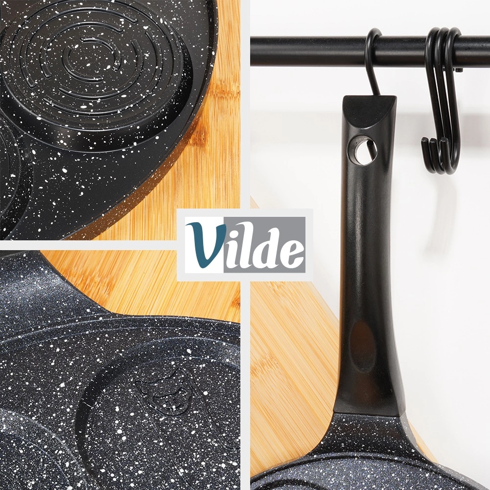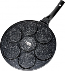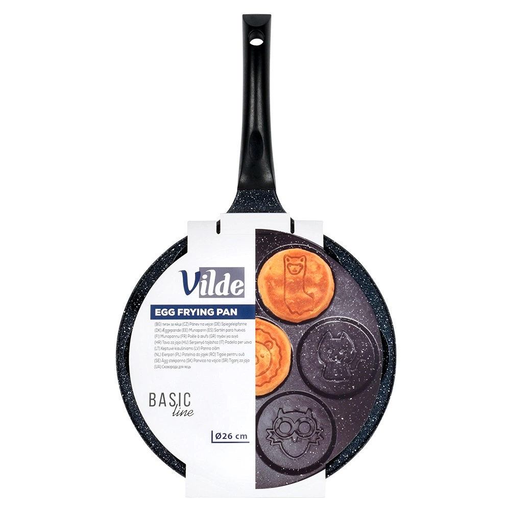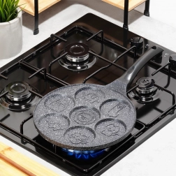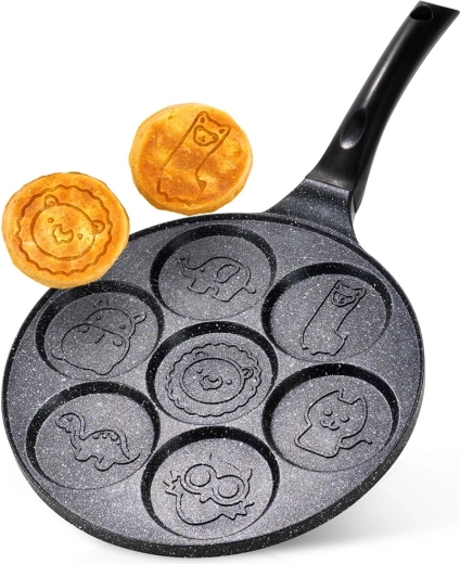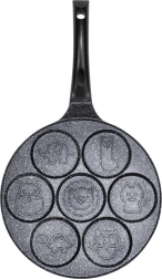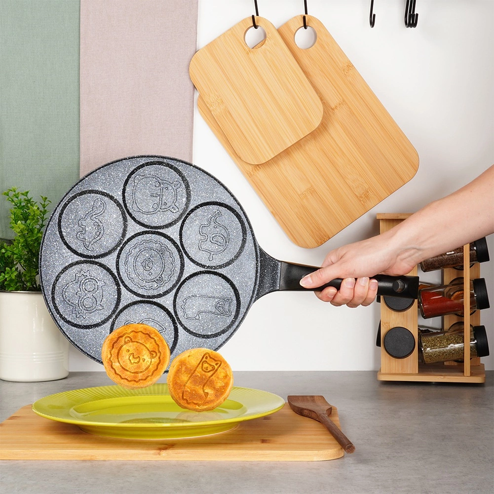 Ova stilska tava sa sedam kalupa idealna je za pripremu jaja, palačinki i mini pancakesa s veselim reljefima životinjica. Neprianjajući granitni premaz omogućuje lako odvajanje namirnica i jednostavno čišćenje, dok aluminijsko tijelo pruža brzu i ravnomjernu raspodjelu topline.