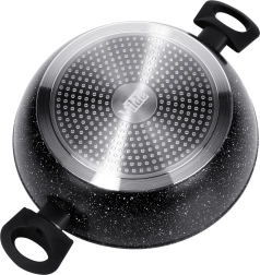 Zahvaljujući širokoj bazi i visokim rubovima idealna je za pirjanje povrća, mesnih mješavina i umaka, kao i za nježno dinstanje. Nehrđajuća indukcijska umetnuta baza brine se za brzo postizanje topline i uštedu energije. Dva bočna Soft Touch držača osiguravaju sigurnu manipulaciju.