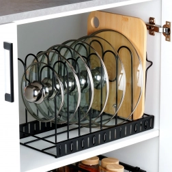 Održavajte poklopce, tanjure i daske odvojeno i pregledno. Organizator štedi prostor i ubrzava pristup često korištenom posuđu.