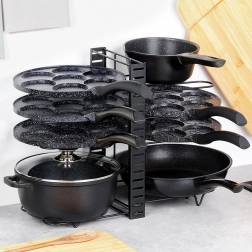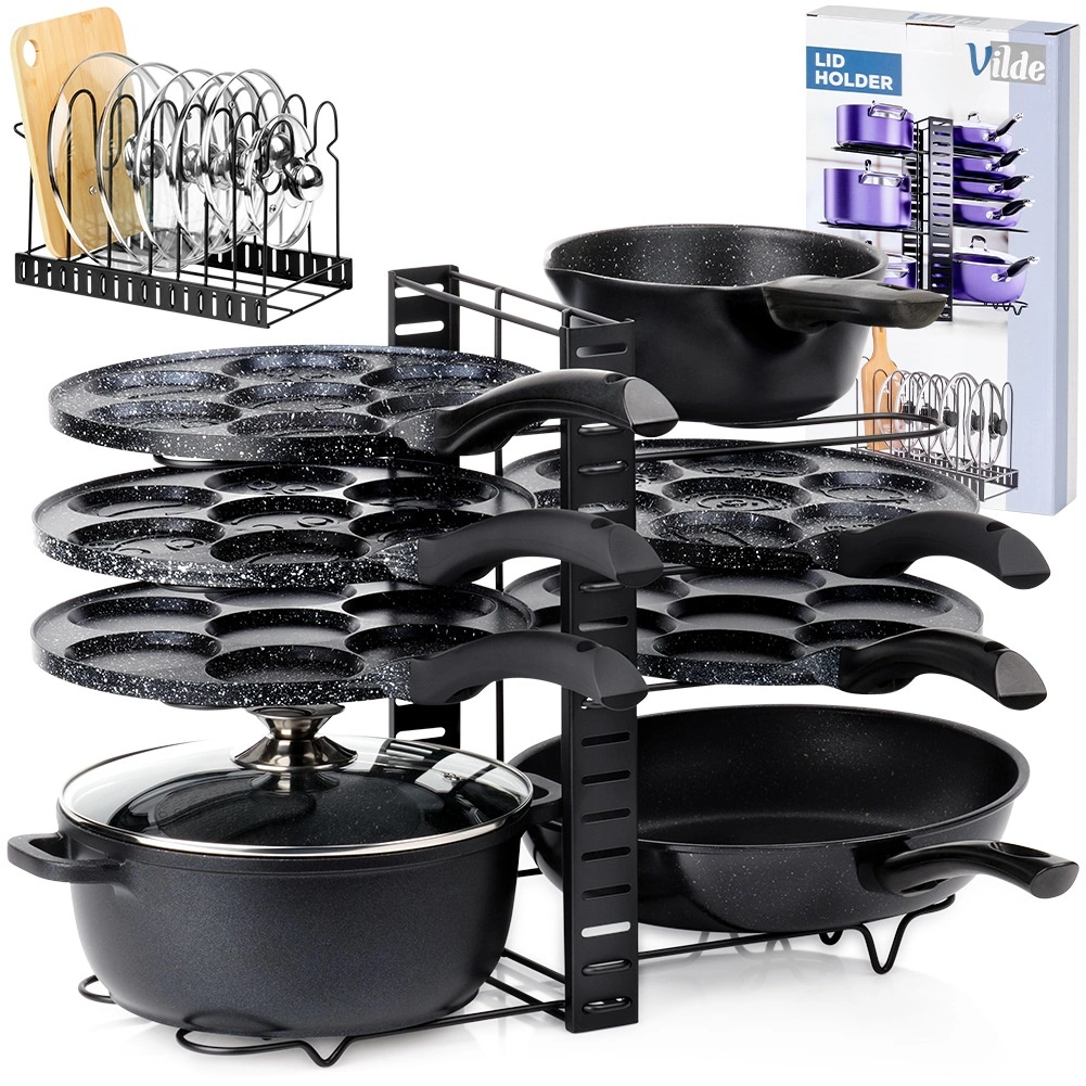 Prebacujte između samostalnog držača za poklopce/tanjure i organizatora za tave i lonce prema trenutačnoj potrebi i prostoru.