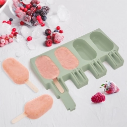 Fleksibilni silikon osigurava brzo i nježno oslobađanje sladoleda bez lomljenja – dovoljno je kalup lagano pritisnuti.