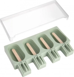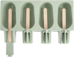 Kalup je izrađen od kvalitetnog silikona u pastelnoljubičastoj zelenoj boji, poklopac je proziran. Prikladan je za perilicu posuđa, zamrzivač i mikrovalnu te podnosi temperature od -20 °C do +120 °C. U pakiranju je 24 kom drvenih štapića. Dimenzije cijelog kalupa su 20 × 11,5 × 2,6 cm, veličina jednog sladoleda cca 7 × 4 cm.