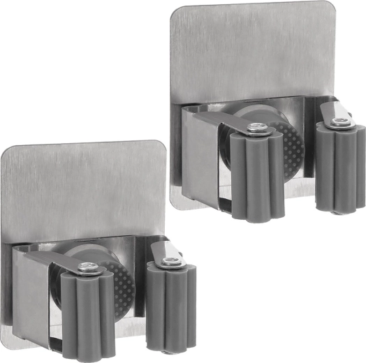 Praktičan set dvaju zidnih držača za mopove, metle i alat pomaže održati savršen red i kod kuće i u radionici. Svaki držač ima podesivi prihvat s protukliznom gumom, nosi do 5 kg i prikladan je za promjere drški do 2,5 cm. Ugradnja je jednostavna i bez bušenja – dovoljno je zalijepiti na čist, gladak podlogu. Izdržljiv nehrđajući čelik, protuklizni valjčići i ušteda prostora čine ovaj set idealnim rješenjem za kupaonicu, kuhinju, predsoblje, tehničku prostoriju ili garažu.