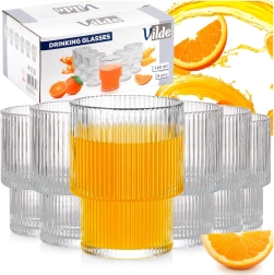 Otkrijte univerzalne čaše s bezvremenim rebrastim dizajnom koje će lijepo doći do izražaja na svakom stolu. Izrađene su od kvalitetnog, čvrstog stakla, dobro leže u ruci i zahvaljujući zapremnini 190 ml savršene su za vodu, sokove, domaće limunade i iced tea. Jednostavan oblik lako se kombinira s ostalim posuđem.
