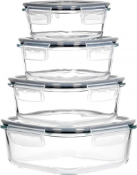 Četiri veličine umeću se jedna u drugu, a napunjene posude mogu se stabilno slagati u hladnjaku i ostavi.
