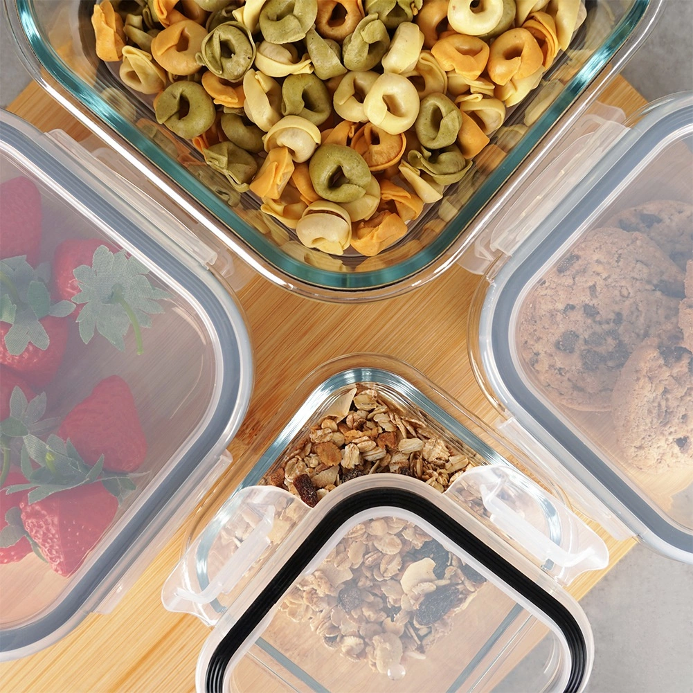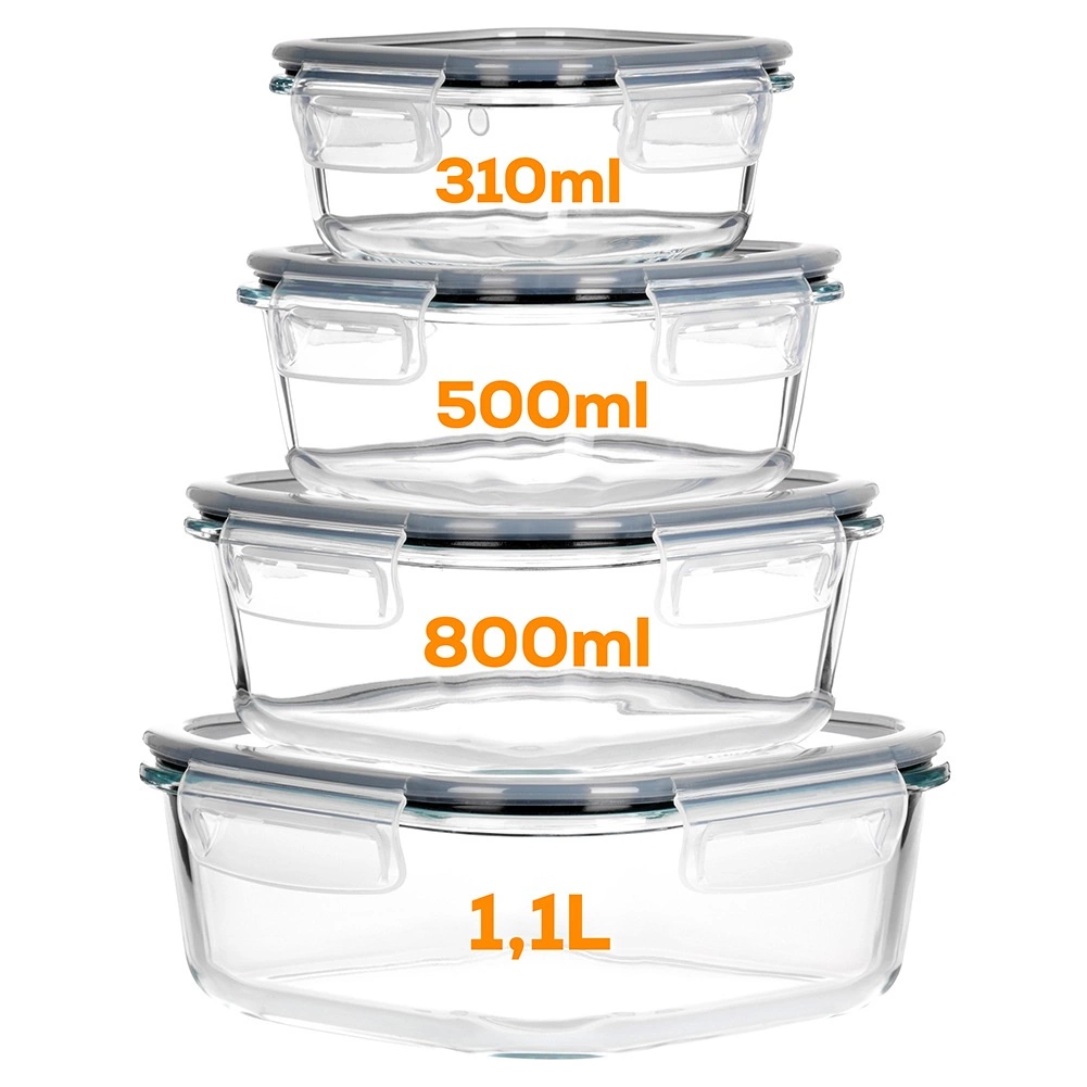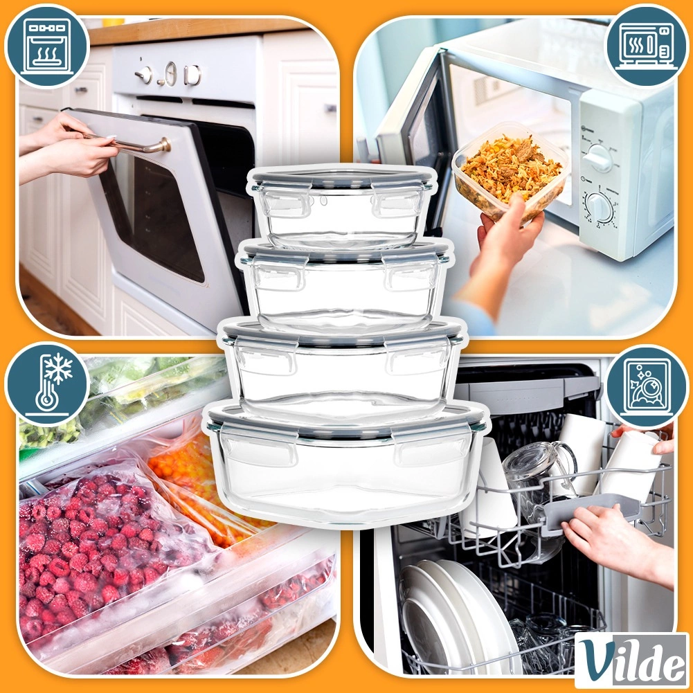 Održite kuhinju preglednom, a namirnice dulje svježima. Staklene posude od otpornog borosilikatnog stakla imaju prozirne stjenke za brzu provjeru sadržaja te poklopce s čvrstim četirima kopčama i crnom silikonskom brtvom koja sprječava propuštanje i prodor mirisa. Idealno za meal prep, čuvanje ostataka i nošenje užina.
