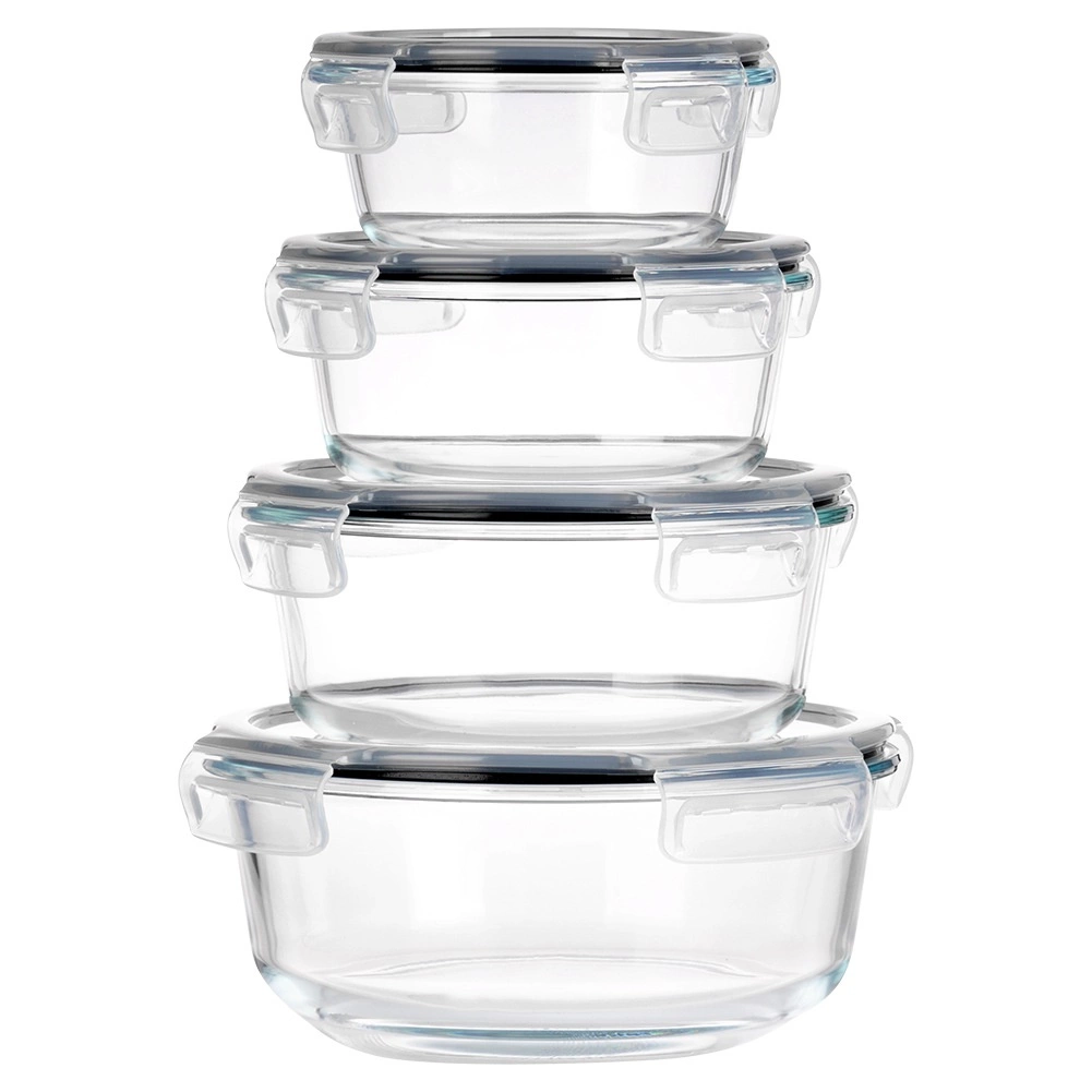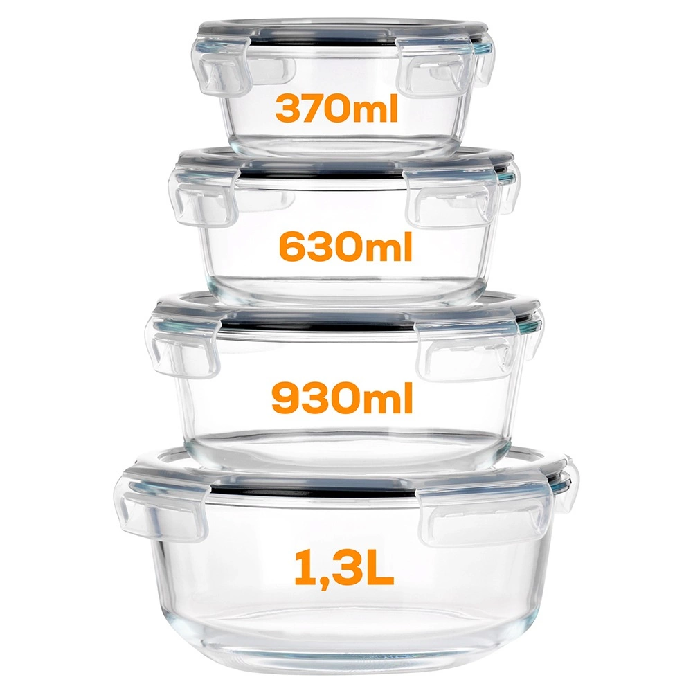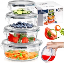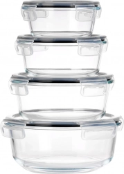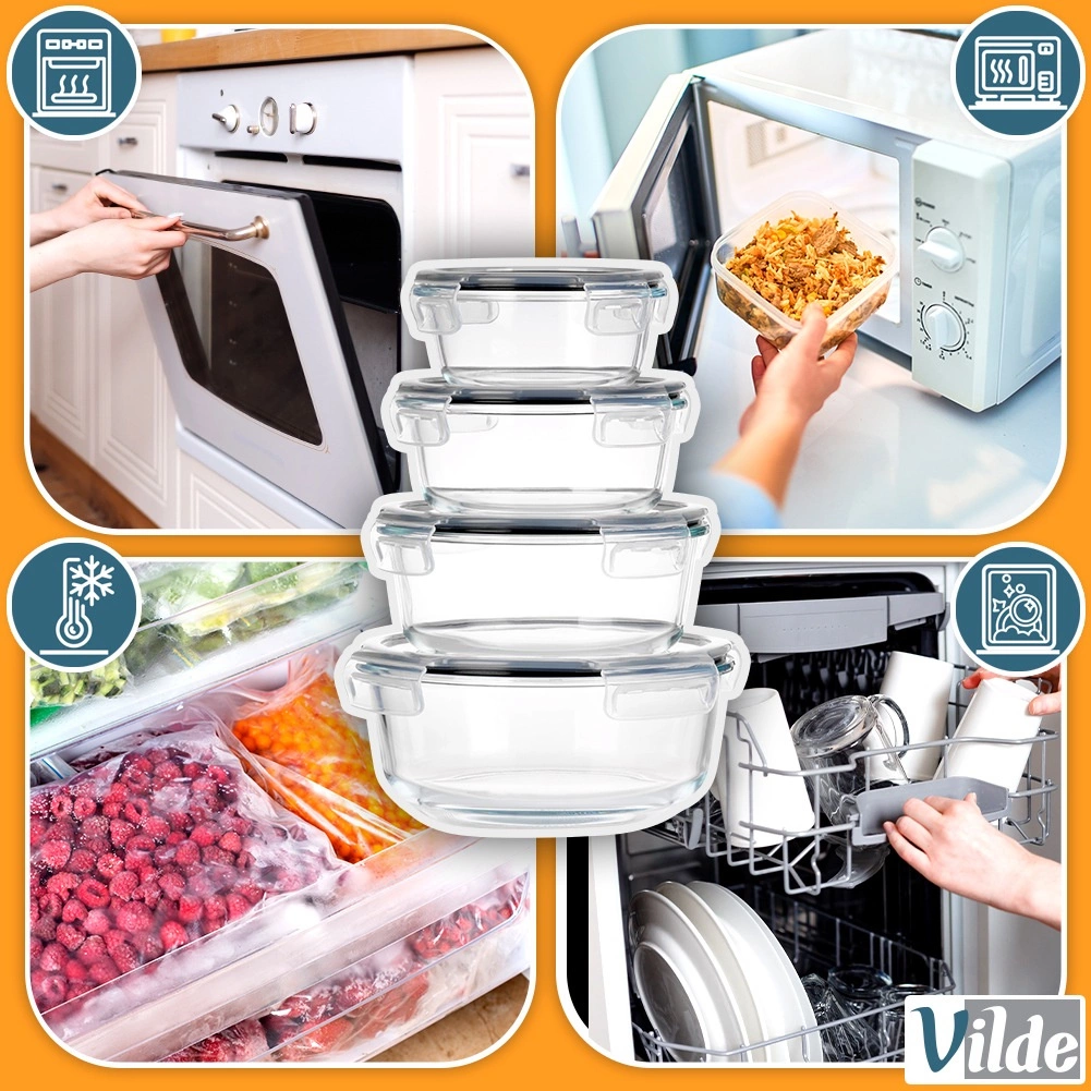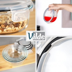 Set staklenih posuda s četiri sigurne kopče i silikonskom brtvom održava vašu hranu dulje svježom i sigurno pohranjenom. Kvalitetno borosilikatno staklo otporno je na temperaturne šokove i ne upija mirise ni boje. Posude su idealne za skladištenje, prenošenje i posluživanje.