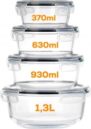 Praktični volumeni 370 ml, 630 ml, 930 ml i 1,3 l pokrivaju svakodnevne potrebe i omogućuju uredno, prostorno učinkovito skladištenje.