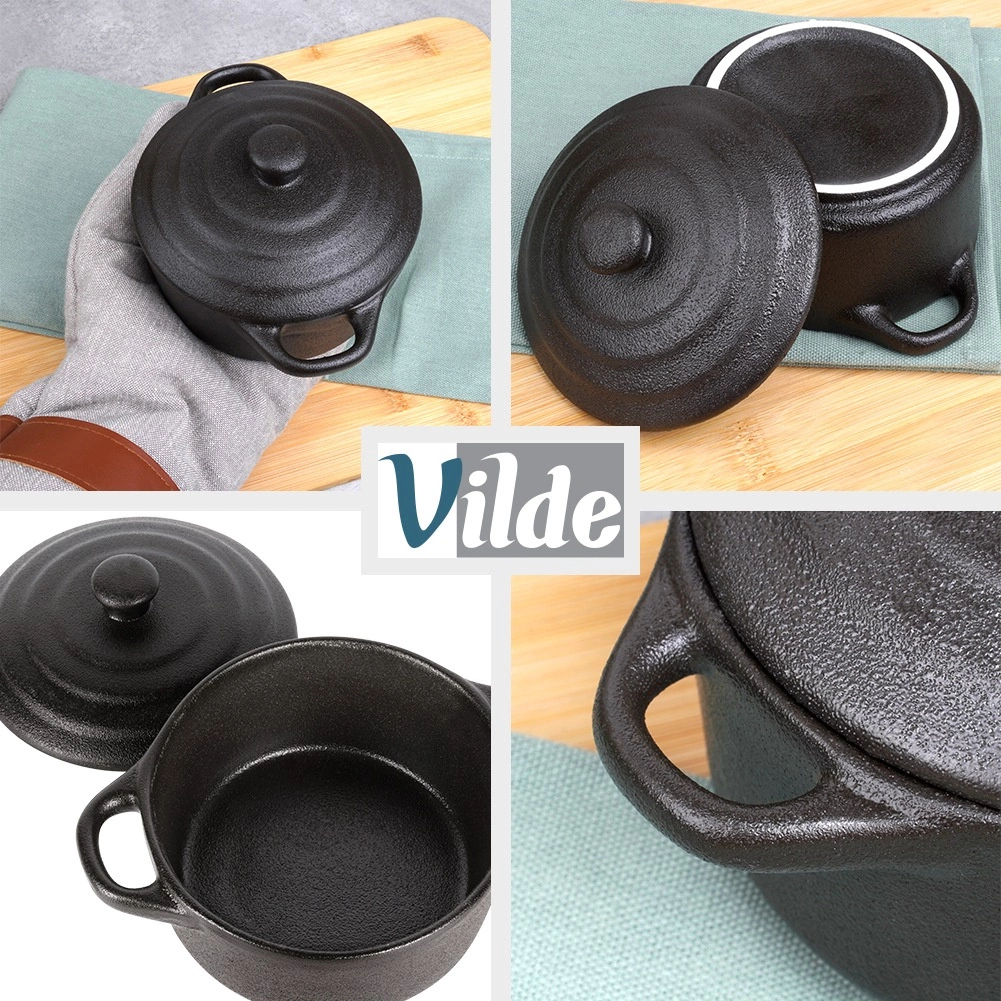 Porculanska posuda za pečenje s poklopcem spaja elegantan izgled i visoku funkcionalnost. Savršena je za mini zapečena jela, pečena jaja, deserte, umake, dipove ili tapase. Ujednačena distribucija topline osigurava lijepo i ravnomjerno pečene rezultate sa svih strana.