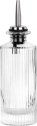 Ova kompaktna staklena boca od 160 ml savršen je izbor za svakodnevno začinjavanje i elegantno posluživanje za stolom. Prozirno, kvalitetno staklo s rebrastom teksturom naglašava boju i bistrinu sadržaja, dok inox izljevni čep sa silikonom omogućuje precizno doziranje bez kapanja i nereda.