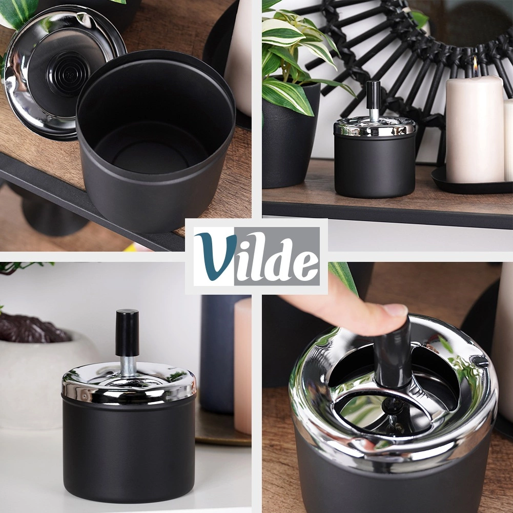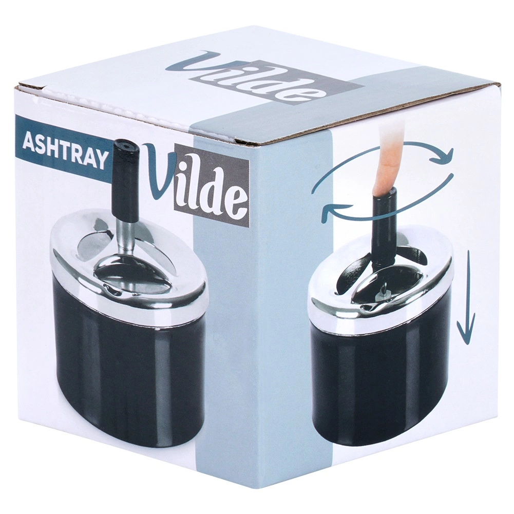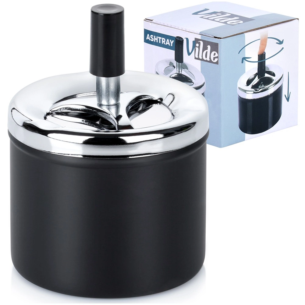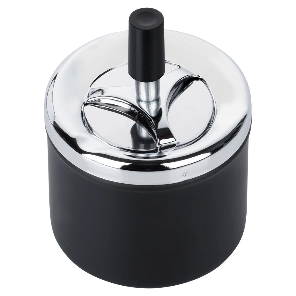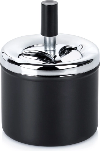 Ova zatvoriva pepeljara spaja moderan dizajn s funkcionalnom izvedbom. Okretni poklopac skriva ostatke cigareta i pomaže zadržati neugodne mirise unutra. Zahvaljujući kvalitetnom metalu u mat crnoj boji i srebrnom poklopcu djeluje elegantno u interijeru i na otvorenom.