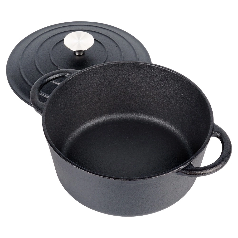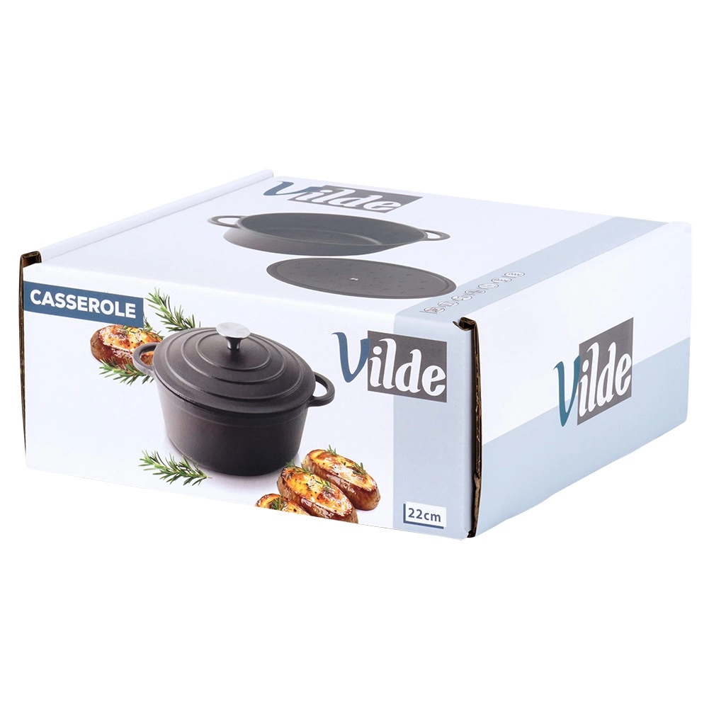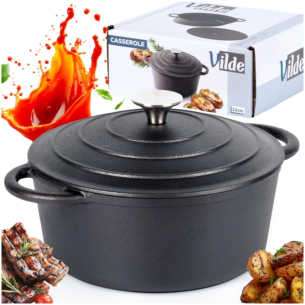 Lijevani lonac CAST LINE promjera 22 cm ističe se masivnom izradom i izvrsnim toplinskim svojstvima. Pogodan je za svakodnevno kuhanje, pirjanje gulaša, juha, složenaca te pečenje mesa u pećnici. Zahvaljujući lijevanom željezu, ravnomjerno se zagrijava i pouzdano zadržava toplinu.