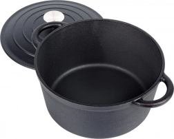 Lonac je kompatibilan s plinom, strujom, staklokeramikom, halogenom i indukcijom te se može koristiti i u pećnici ili na roštilju. Dva široka hvata osiguravaju sigurnu manipulaciju, inox gumb na poklopcu podnosi visoke temperature. Bez neljepljivih premaza – čisto lijevano željezo za prirodno kuhanje i dug vijek trajanja.