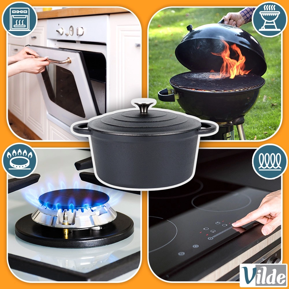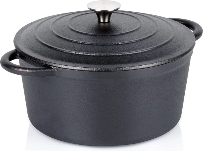 Masivno lijevano željezo raspodjeljuje toplinu po cijeloj posudi i održava stabilnu temperaturu za sočna, ravnomjerno pečena jela.
