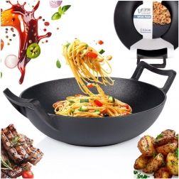 Wok je univerzalan i savladava prženje, pirjanje, pečenje i zapečenje. Možete ga koristiti na plinu, struji, staklokeramici, halogenu, indukciji, u pećnici i na roštilju. Dvostruke ručke pružaju siguran hvat pri rukovanju (preporučujemo rukavice). Uz pravilnu njegu posuđe zadržava dugi vijek trajanja.