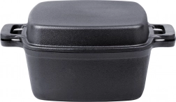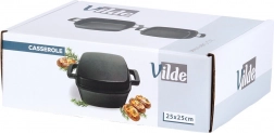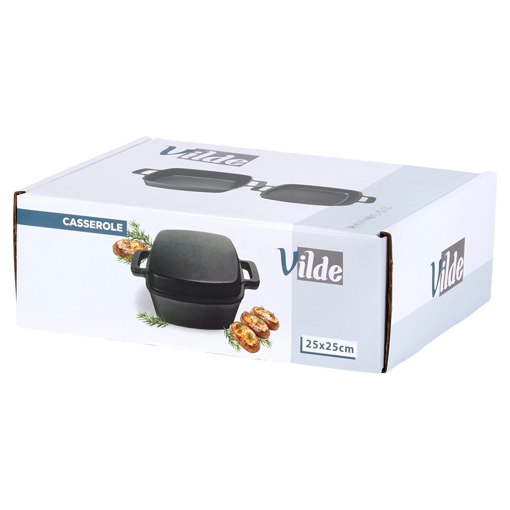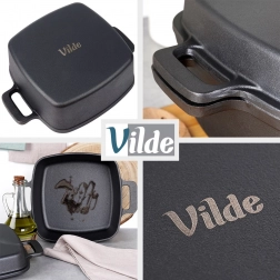 Univerzalan kvadratni lijevani lonac 2-u-1 s poklopcem koji služi i kao samostalna tava/pekač. Masivno lijevano željezo odlično provodi i akumulira toplinu, otporno je na visoke temperature te je pogodno za sve vrste štednjaka, uključujući indukciju, za pećnicu, roštilj i otvorenu vatru. Idealno za dinstanje, pečenje, kuhanje juha, gulaša i zapečenih jela. Originalan proizvod VILDE iz linije CAST LINE.