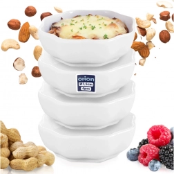 Set od četiri univerzalne zdjelice od kvalitetnog porculana u čisto bijeloj boji podići će svako posluživanje. Kompaktne dimenzije (7,5 × 6 × 2,5 cm) i zapremnina 50 ml idealne su za male porcije umaka, dipova, snackova ili deserata. Sjajna završna obrada i diskretno valoviti rub djeluju elegantno, a ujedno omogućuju stabilno slaganje radi uštede prostora.