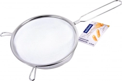 Inox kuhinjsko cjedilo promjera 16 cm nezamjenjiv je pomoćnik u svakoj kuhinji. Fina i gusta mrežica pouzdano procijedi juhu, umake ili čaj, kao i ispere rižu i mahunarke. Zahvaljujući čvrstom okviru i dugoj dršci ugodno je za rad, a manji bočni kukici osiguravaju stabilno postavljanje na posudu.