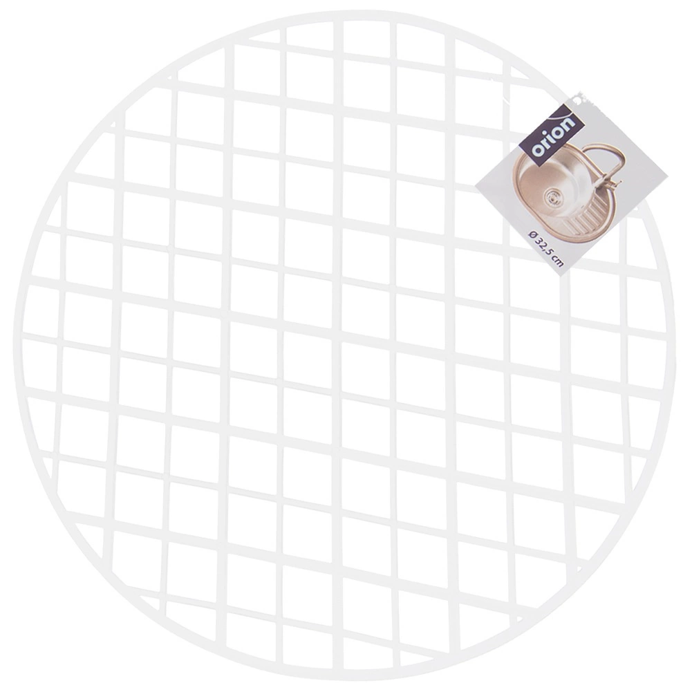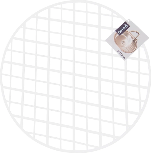 Praktična okrugla podloga za sudoper promjera 32,5 cm štiti dno sudopera od ogrebotina i udaraca. Izrađena je od izdržljive plastike, ima protukliznu površinu, perforacije za slobodan otjecaj vode i otporna je na temperature do 80 °C. Univerzalna bijela boja uklapa se u većinu kuhinja.