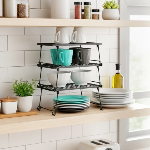 Prikladna je ne samo za kuhinju, već i za smočnicu, kupaonske ormariće ili ured. Polica je čvrsta i stabilna, a po potrebi se može sklopiti naplocho i lako spremiti. Minimalistički dizajn lako se kombinira s različitim stilovima opreme.