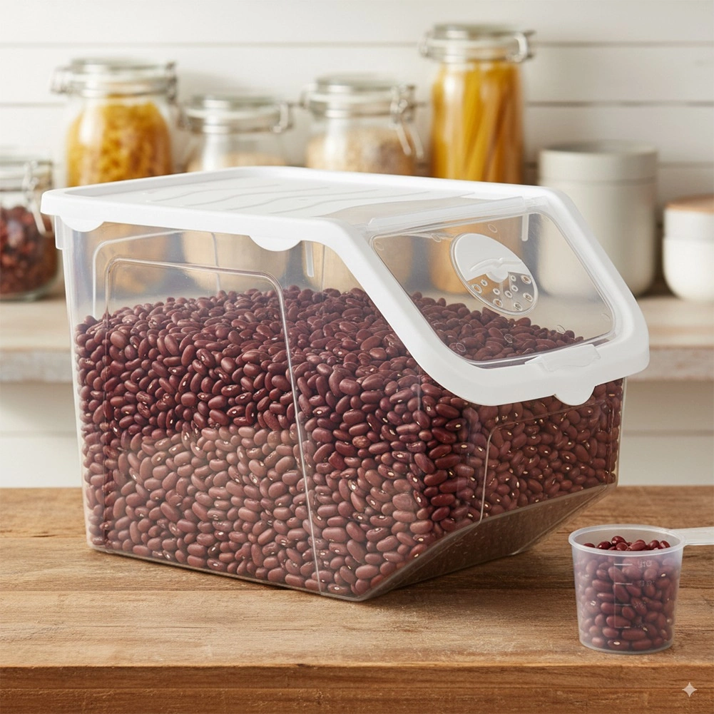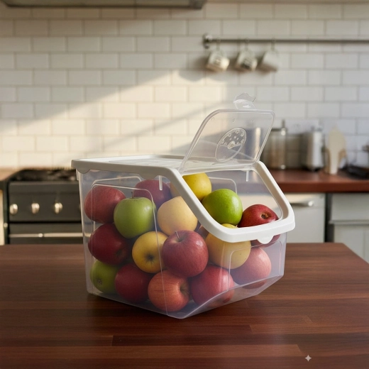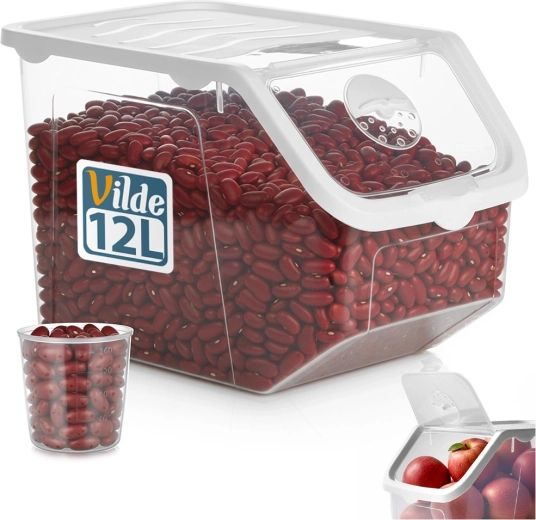 Održite red u kuhinji s praktičnom kutijom zapremine 12 l, idealnom za pohranu luka, krumpira, češnjaka, voća i rasutih namirnica. Prozirno tijelo omogućuje brzu provjeru sadržaja, bijeli poklopac s prozirnim preklopom olakšava svakodnevnu upotrebu. Posuda je prikladna za kontakt s hranom, bez BPA, može se prati u perilici posuđa i koristiti u zamrzivaču.